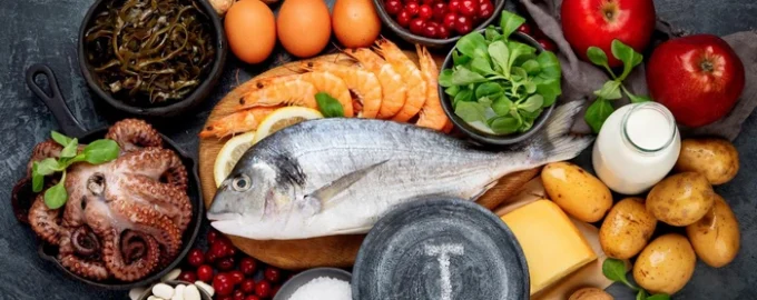 Također biste trebali obogatiti svoju prehranu namirnicama koje sadrže puno joda: plodovi mora (dagnje, lignje, škampi, kavijar)